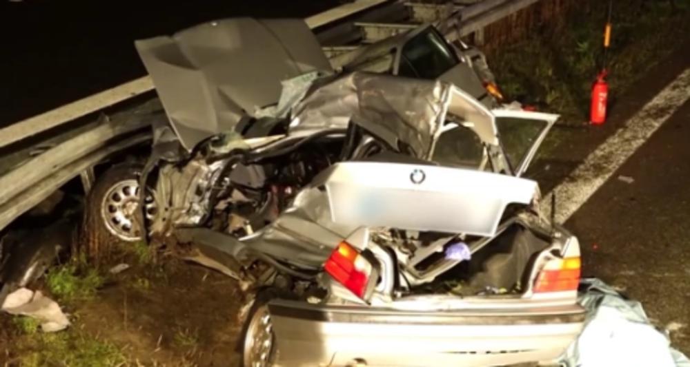 Vozač BMW-a je, prema pisanju nemačkih medija, vozeći putem klizavim od kiše u jednom trenutku izgubio kontrolu nad vozilom i zakucao se u kamion sa zadnje strane. Staklo je bilo rasuto po celom putu. Vozač i njegov saputnik ostali su zaglavljeni u smrskanom automobilu.