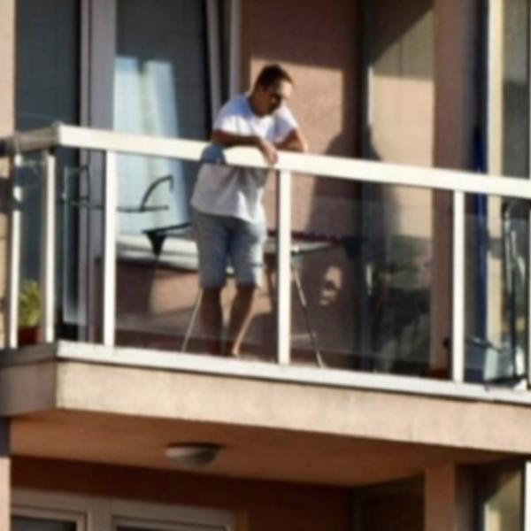 On je pre par trenutaka viđen na terasi, kako preskače sa jednog balkona na drugi. On je top izveo obučen samo u gaće, i izgovarao je nešto nalik pretnjama okupljenim novinarima.