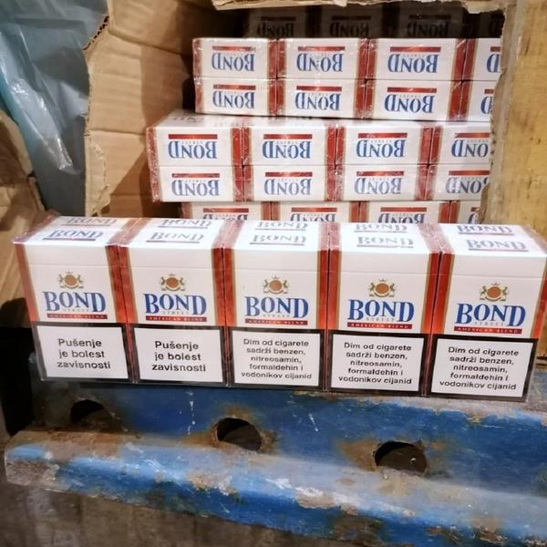 Skidanjem limene konstrukcije kojom je prednji deo prikolice bio pregrađen, otkriven je tzv. „bunker“ do vrha ispunjen boksovima cigareta „bond“ bez akciznih markica.