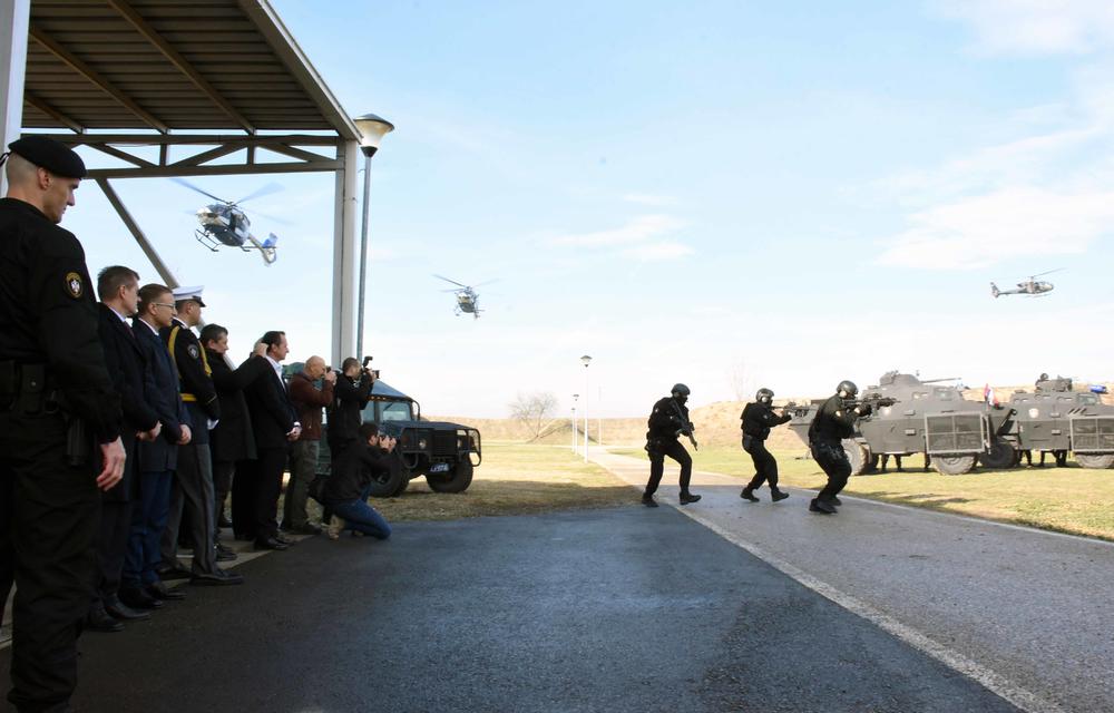 Pre početka zvanične svečanosti pripadnici SAJ-a izveli su taktičko-pokaznu vežbu upada u objekat i eliminasanje terorista. U vežbi su učestvovali interventni tim ove jedinice, borbena vozila i helikopteri, a koristili su bojevu municiju.