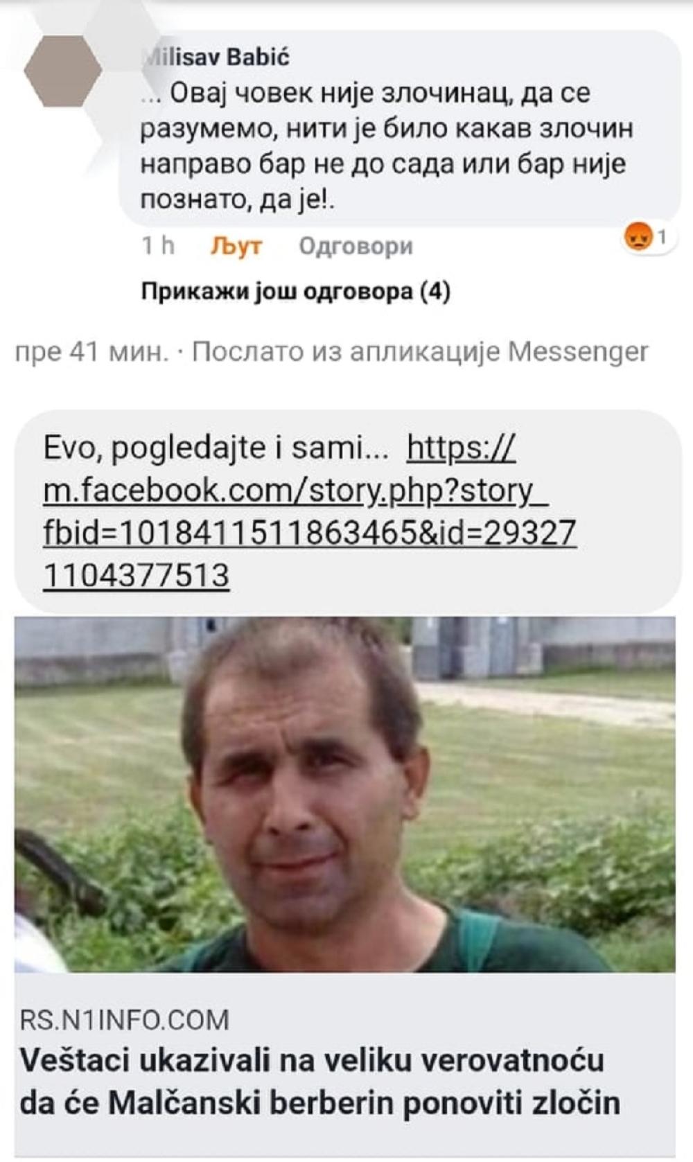 Dok roditelji male Monike već deseti dan ne spavaju i sa zebnjom iščekuju da im se ćerka pronađe i živa vrati kući, izvesni M. R., između ostalog, piše obraćajući se ženskim osobama: „Može i tebe da ošiša“, „Živeo malčanski berberin, samo napred, šišaj sve“.