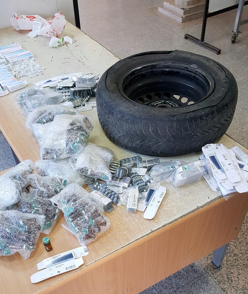 Međutim, prilikom detaljnog pregleda najpre je u rezervnoj automobilskoj gumi pronađeno 3.000 tableta „Oxandrolone“ i 272 ampule testosterona.