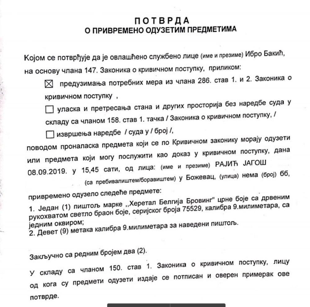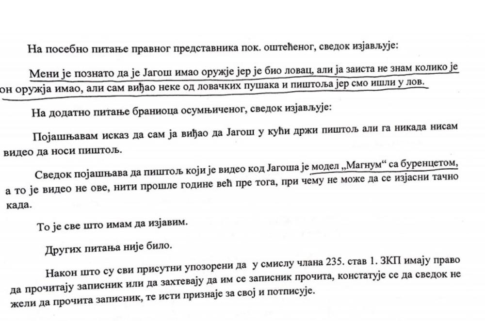 Inače, jedan od svedoka rekao je na sudu da mu je poznato da Jagoš poseduje pištolj, jer je bio lovac.