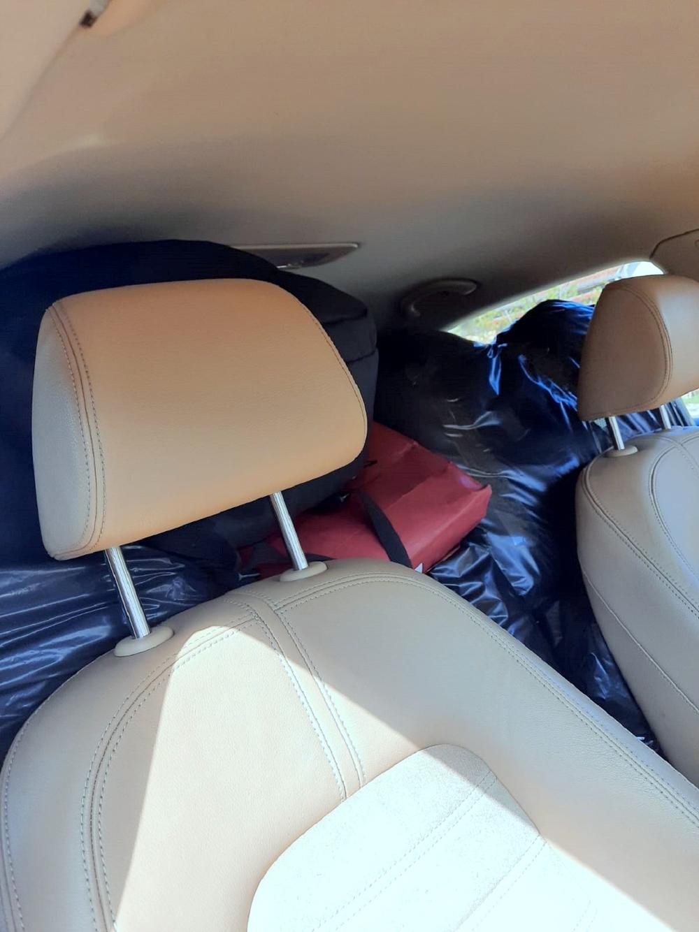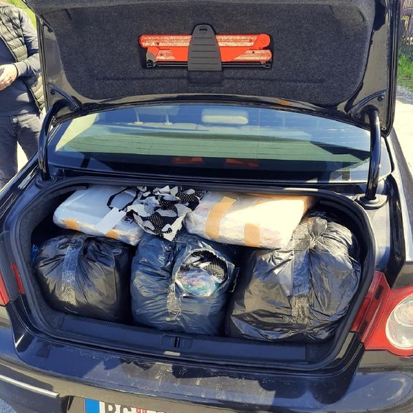 Već na prvi pogled videlo se da je gotovo cela unutrašnjost automobila ispunjena crnim džakovima sa robom, a ispostavilo se da je i gepek automobila pun istih takvih vreća.