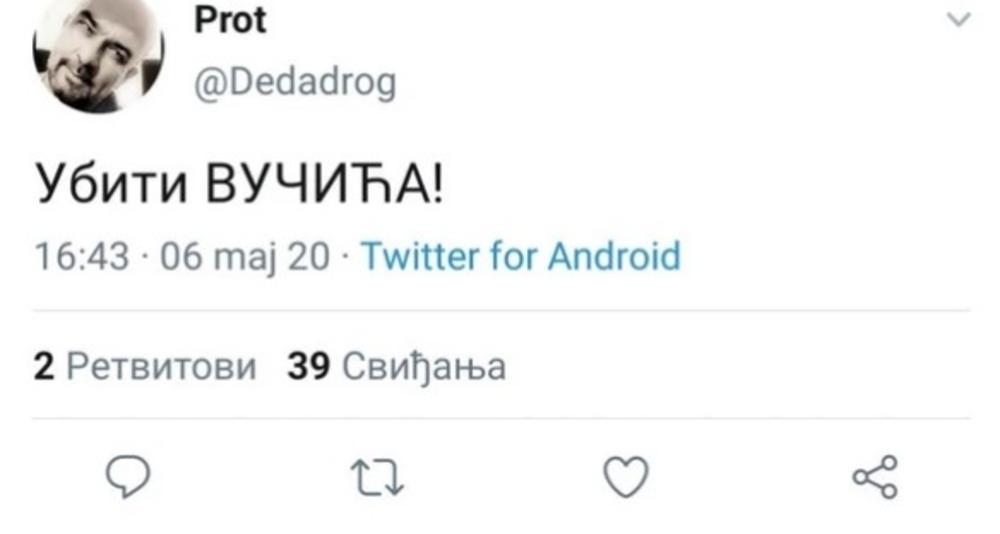 Osumnjičeni je putem društvene mreže Tviter, između ostalog, više puta direktno pozivao na ubistvo predsednika Republike Srbije, Aleksandra Vučića