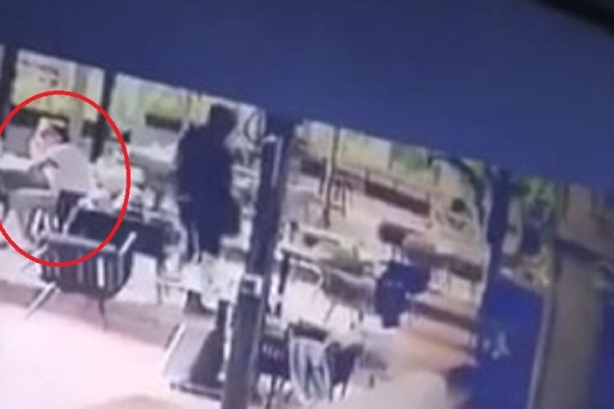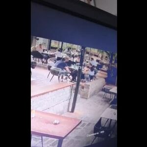 Naoružani muškarac trčao je po lokalu u ponedeljak popodne tražeći nekoga, a na dokaznom materijalu se vidi kako gosti uspaničeno beže od njega, ali, ne i jedan gospodin, što se vidi na snimku u 38. sekundi.