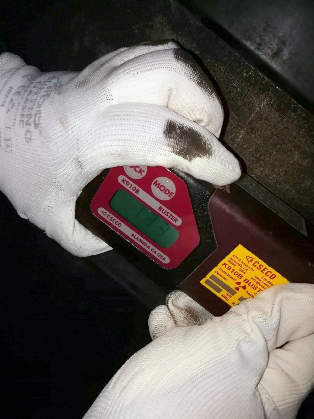 Busterom, uređajem za merenje gustine materije, potvrđene su sumnje carinskih službenika, jer je prisustvo tečnosti detektovano samo na početku rezervoara, a kako se odmicalo ka sredini, vrednosti su ukazivale na prisustvo čvrste materije.