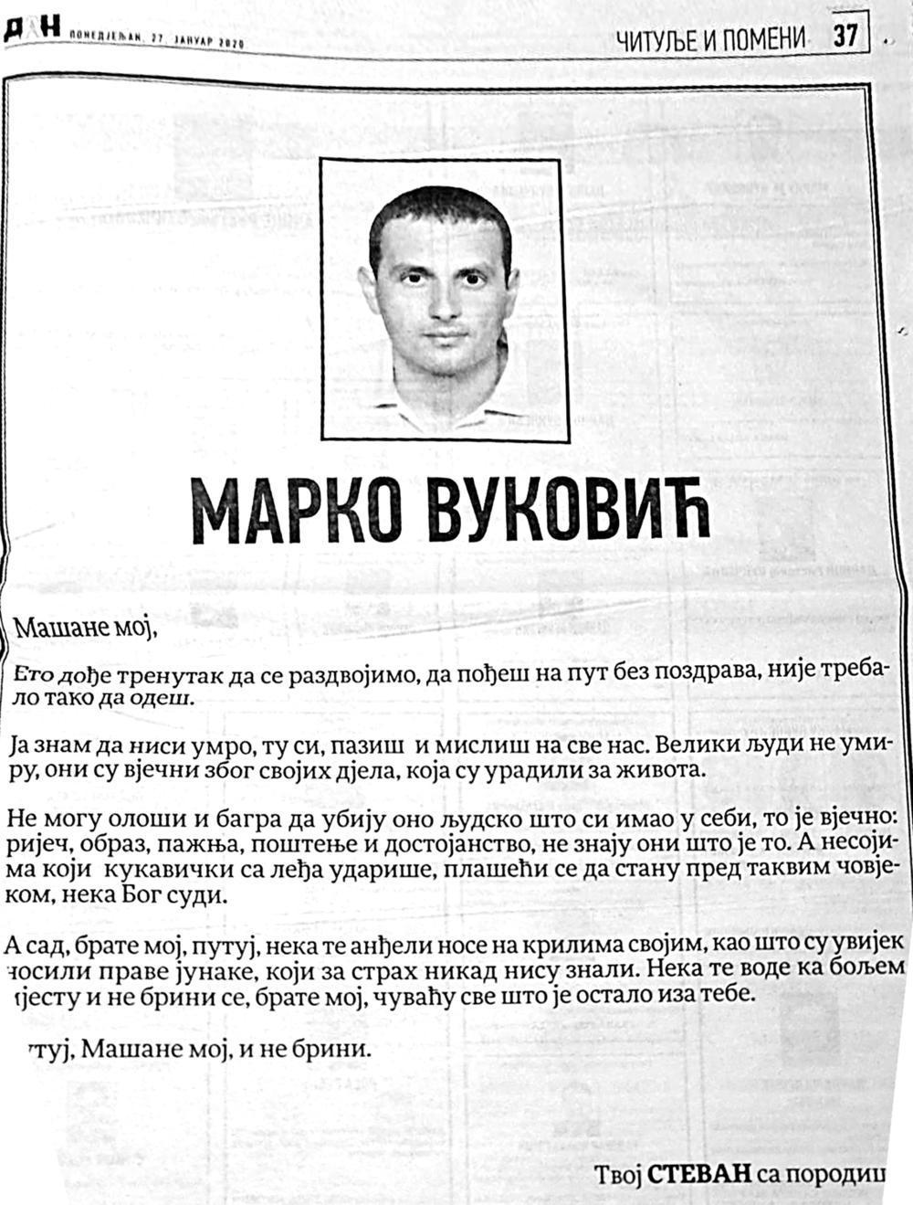 Podsetimo, Marko Vuković bio je rodom iz Kotora, a ubica ga je izrešetao ispred Osnovne škole "Borislav Pekić" nakon što su njegova deca ušla u njihov automobil "BMW X5".