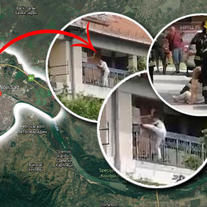 Veliki broj pripadnika policije našao se ispred zgrade, kao i Hitna pomoć, kao i vatrogasci koji su raširili vazdušni jastuk.