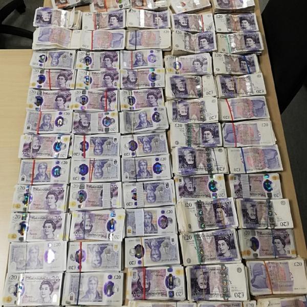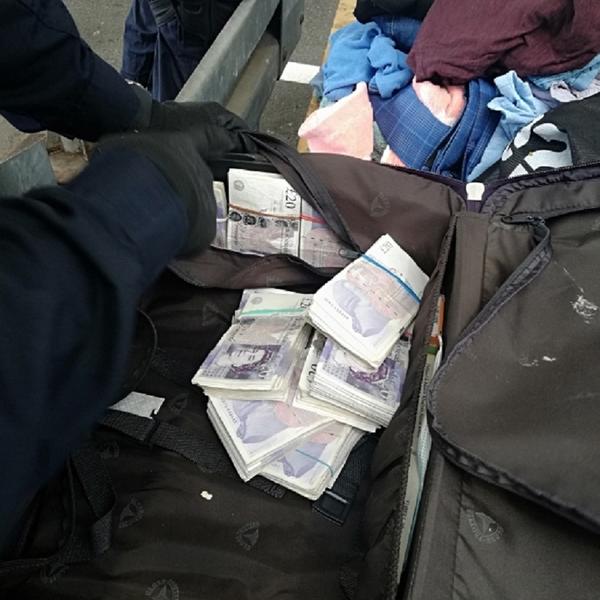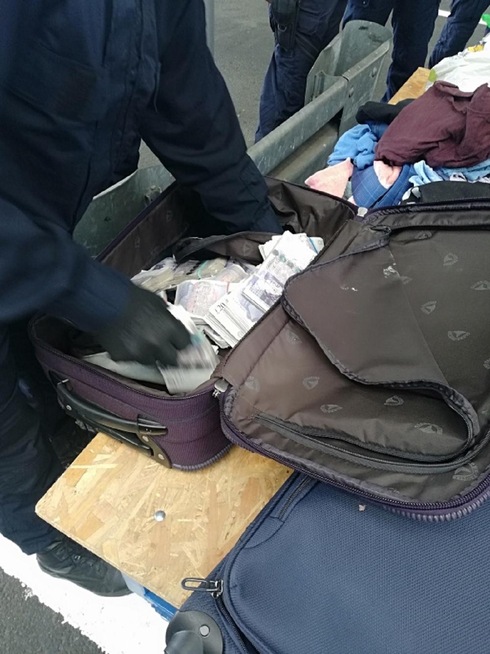 Međutim, detaljnom kontrolom automobila i prtljaga ispod postave četiri kofera sa ličnim stvarima pronađeni su svežnjevi novčanica u apoenima od 10, 20 i 50 britanskih funti.