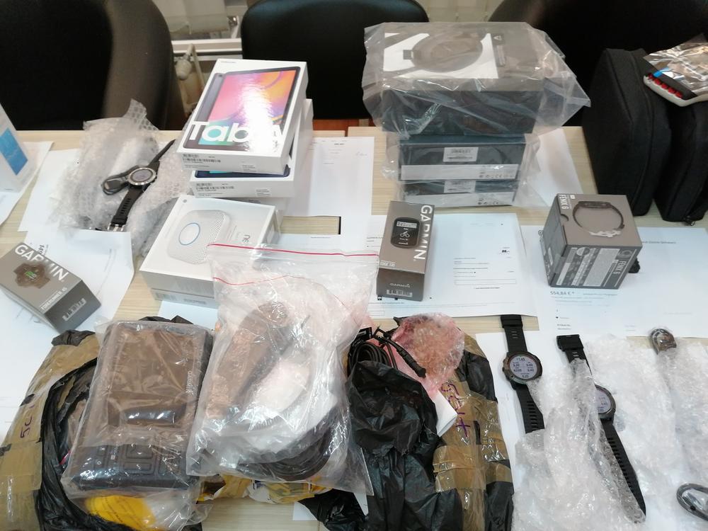 Međutim, kada je carinik otvorio prtljažnik, u torbama i koferima je zatekao četrdesetak novih ručnih satova, navigacionih uređaja i sonara za ribolov robne marke „garmin“.