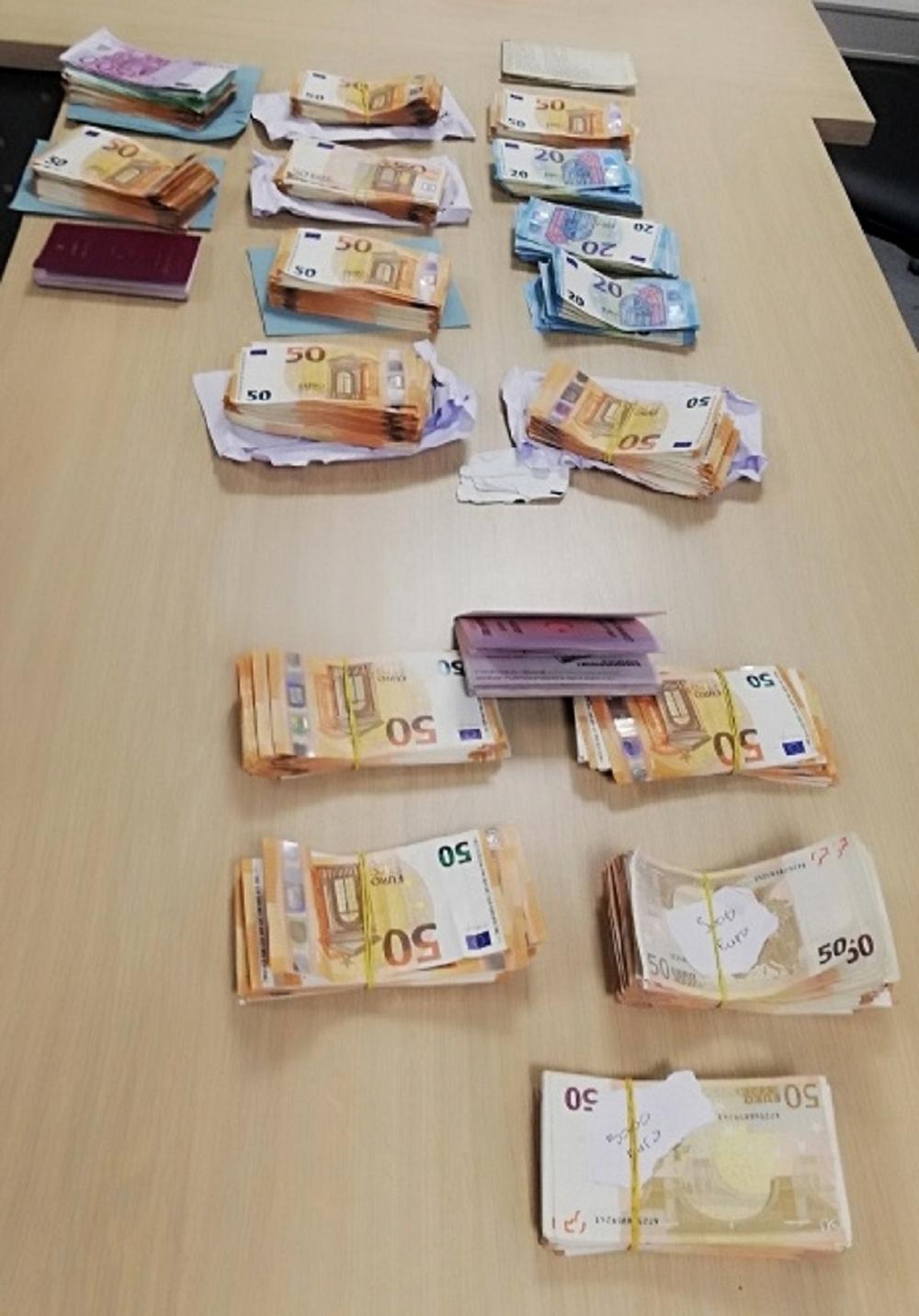 U fabričkoj šupljini ispod vozačkog sedišta se krilo 39.900 neprijavljenih evra za koje je vozač rekao da pripadaju njemu, dok se u kesi skrivenoj ispod suvozačkog sedišta i u njegovoj torbici nalazilo još 23.600 neprijavljenih evra.