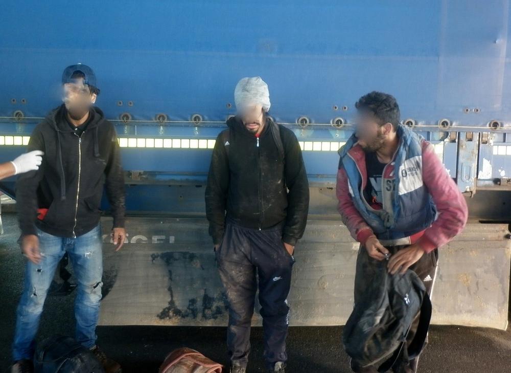 Tokom pregleda uočeno je da su carinska obeležja nepovređena, međutim, u tesnom prostoru kamionske šasije, između priključnog vozila i paletara, uočene su noge ljudi koji su tamo bili sakriveni.