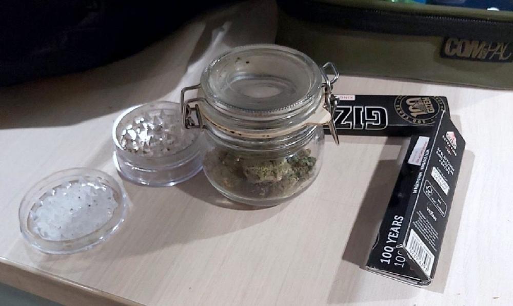 Prilikom ličnog pregleda u torbici koju je vozač nosio oko pojasa, pronađena je staklena tegla puna suvih cvetova marihuane, kao i jedan zavežljaj presovanog hašiša.