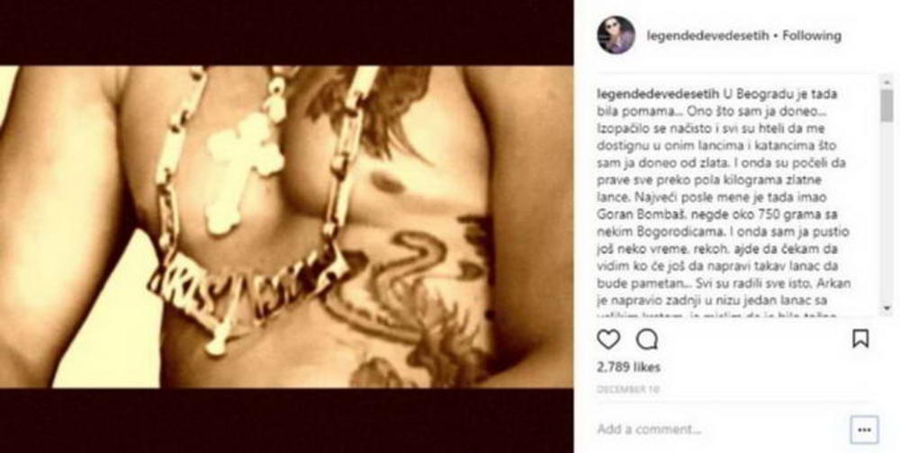 On je svojevremeno ispričao kako je prvi doneo i poneo masivne lance u Beograd i kako je onda nastala pomama za njima i kako su svi želeli da ga dostignu u težini zlatnih lanaca