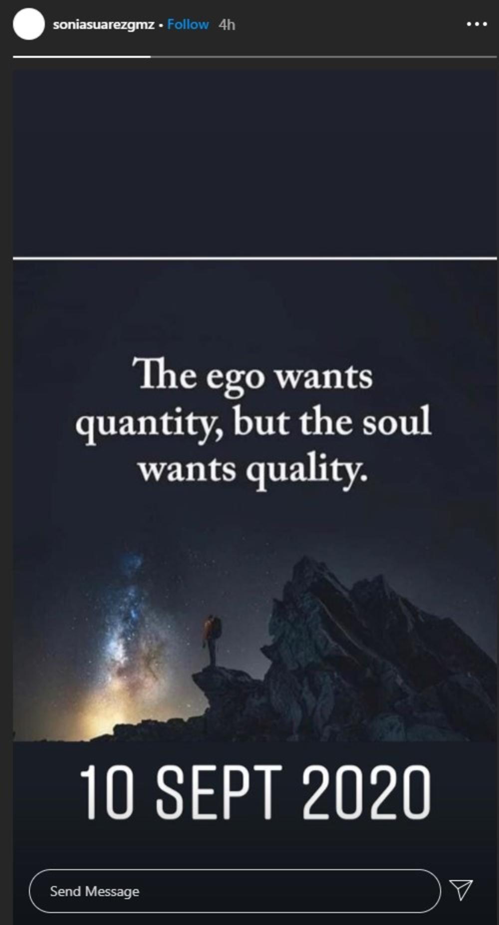 Naime, ona je na svom Instagramu objavila fotografiju sa citatom: “Ego želi kvantitet, ali duša kvalitet”.