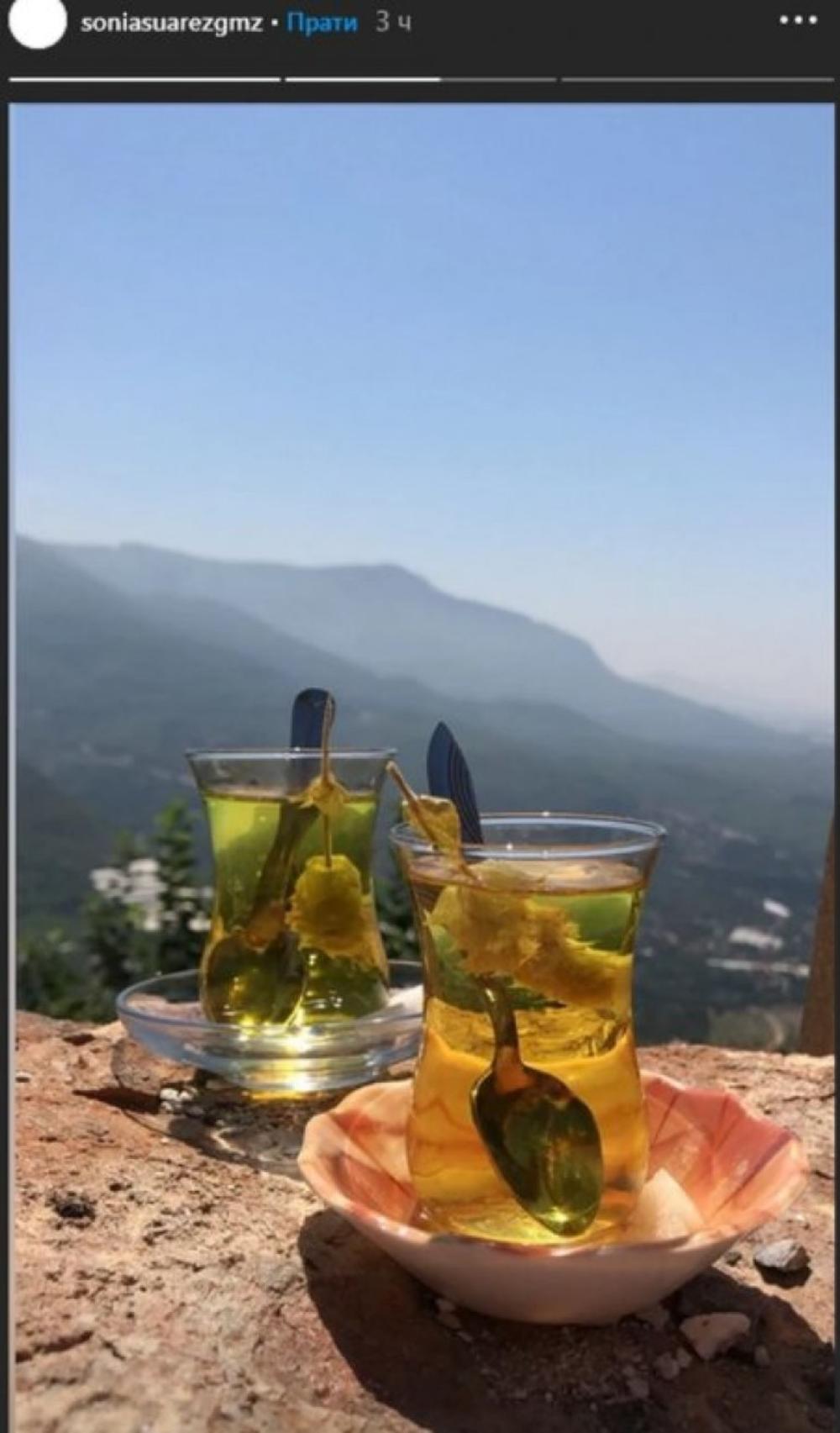 Potom je objavila fotografiju na kojoj su dve šolje čaja, a zatim i buket cveća.