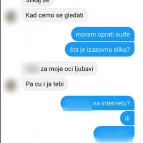 - Slikaj se. Kad ćemo se gledati? Pošalji neku izazovnu sliku - tražio je predator.