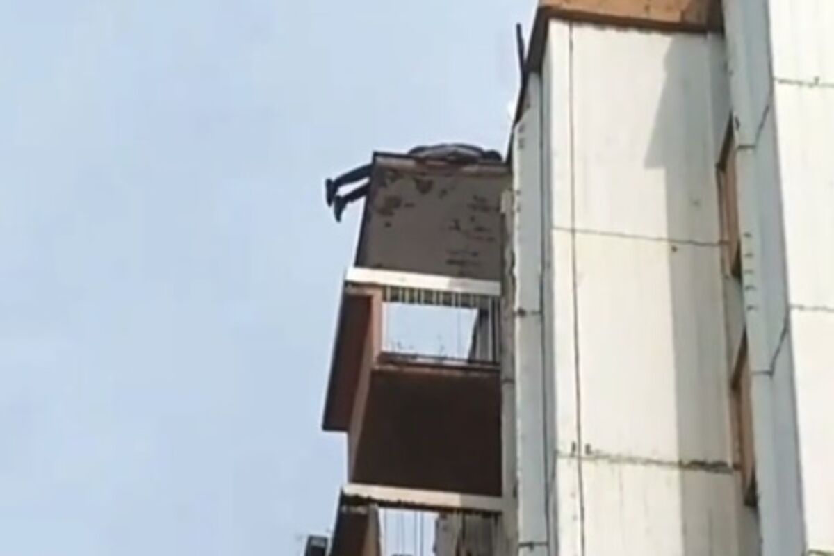 U početku se mislilo da nepoznati muškarac spava ili leži onesvešćen na strehi terase na 12. spratu zgrade. Ipak, čim su mu vatrogasci prišli dovoljno blizu on se brzo i odlučno iz ležećeg stava bacio u ponor - samo da bi pao na terasu ispod!