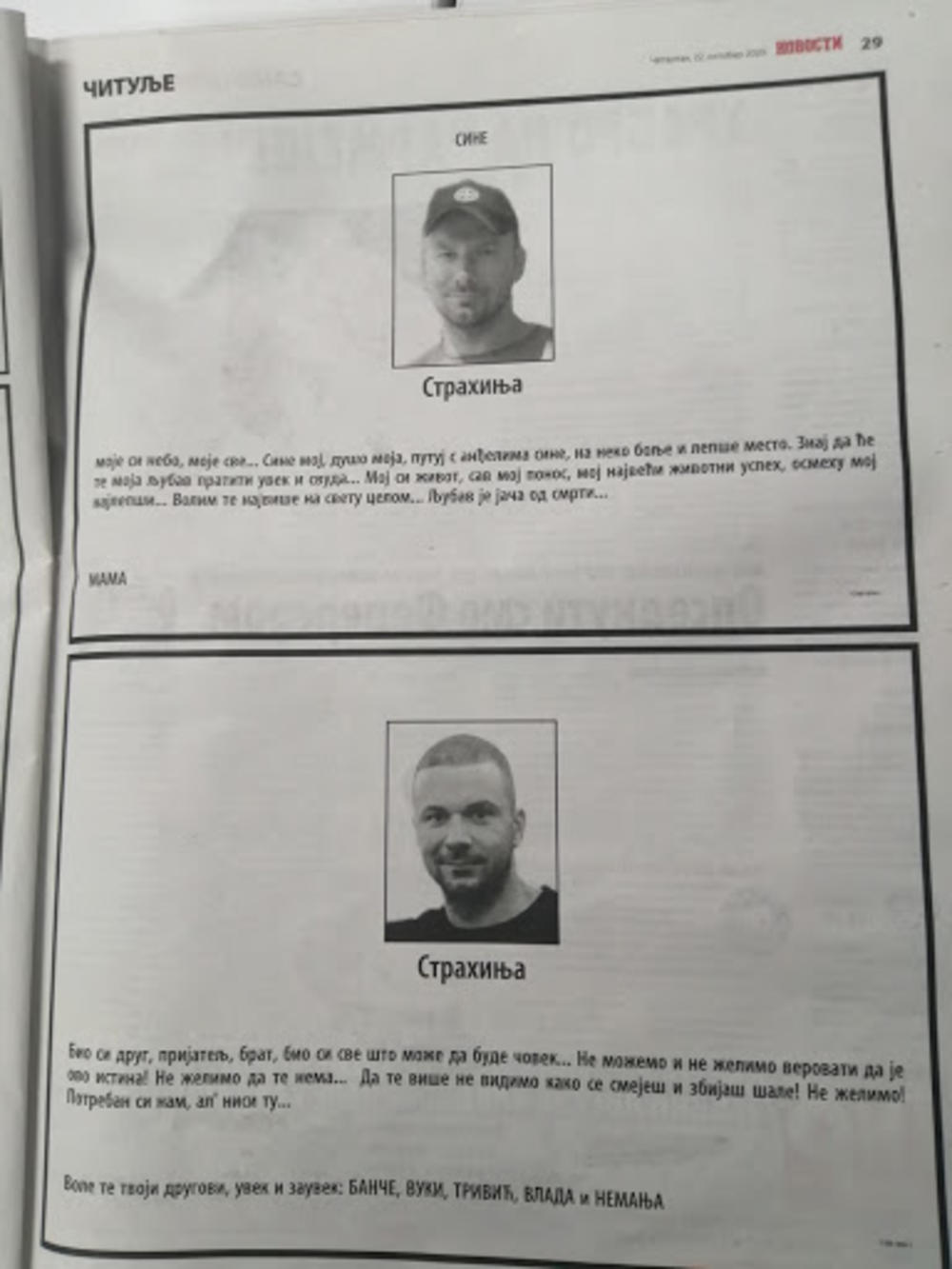 I Strahinjini prijatelji su objavili čitulju, kojom su poručili da i dalje ne mogu da veruju da ga više nema.