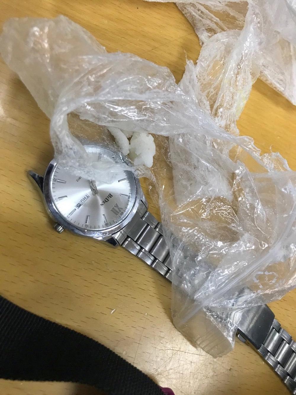 Kesica je bila puna kristalne bele materije za koju je putnica kasnije potvrdila da je reč o drogi ''spid'', a koja se tokom incidenta delom rasula po službenoj prostoriji, a delom po betonskom pločniku ispod prozora i po travnjaku.