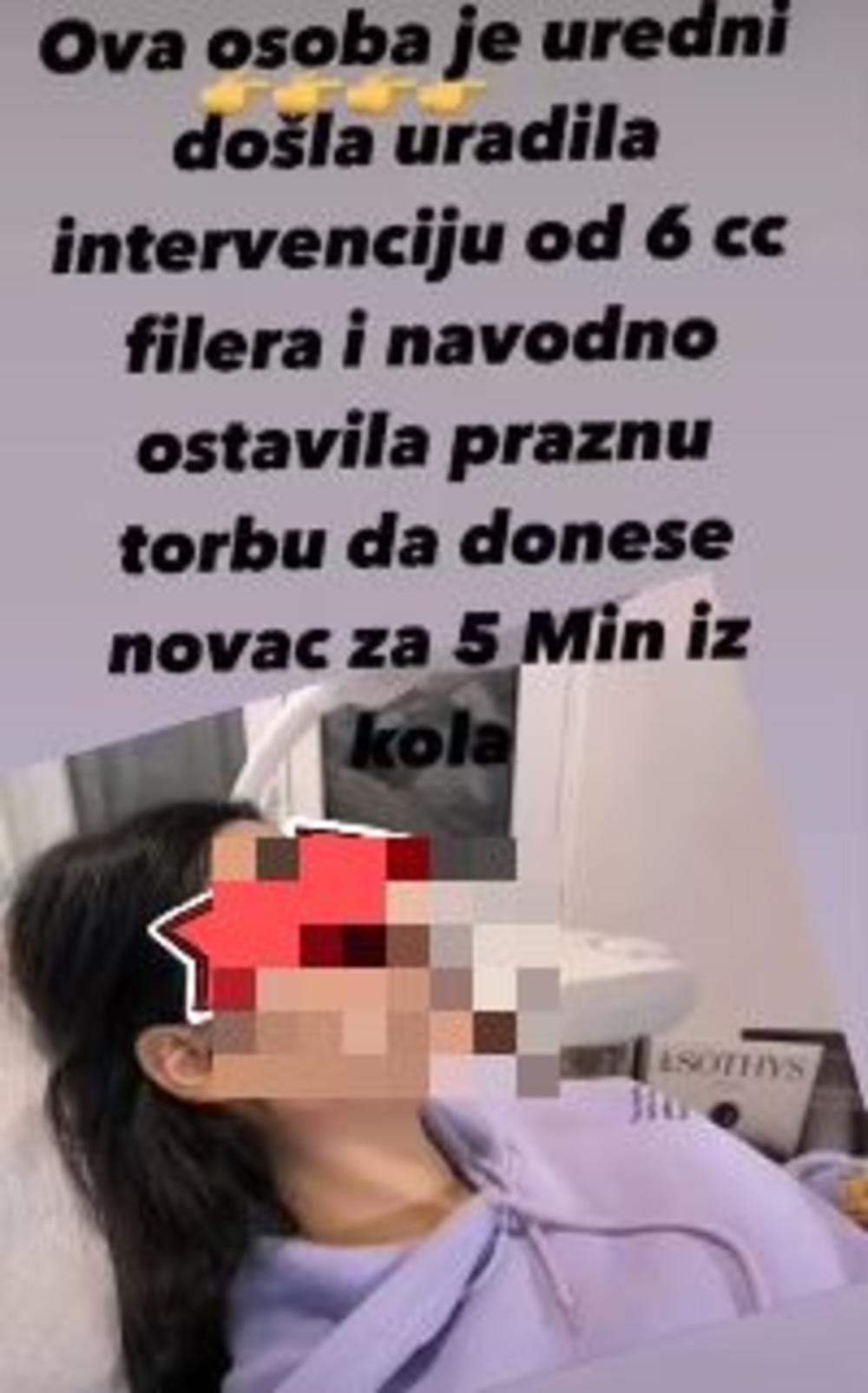 Naime, krijentkinji je ubrizgano 7,5 kubika hialurona, a za one koji ne znaju kolika je cena lepote, za samo pola kubika treba da izdvojite u proseku od 150 do 200 evra, pa vi vidite kolika je to prevara.