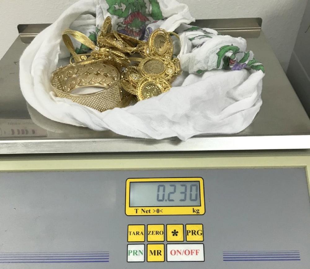 U prisustvu putnika, nakit je izmeren, te je utvrđeno da se radi o 230 grama zlatnog nakita koji je privremeno zadržan do okončanja prekršajnog postupka.