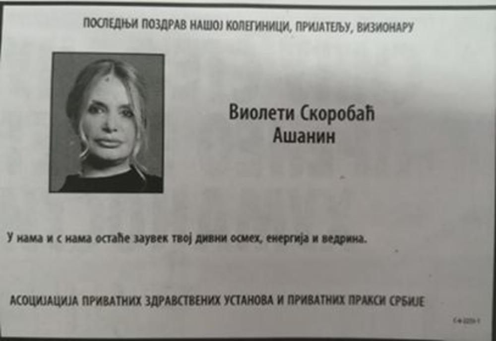Vest o samoubistvu doktorke Violete Skorobać Ašanin (50), potresla je celu Srbiju.
