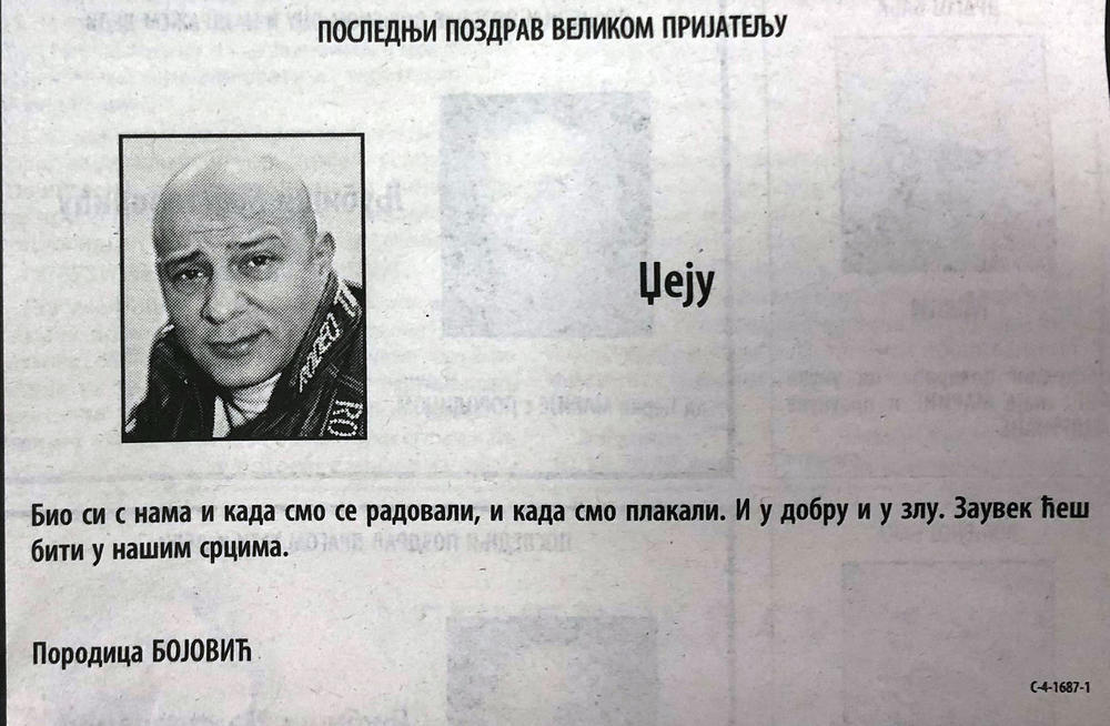 Sada se na stranicama koje su predviđene umrlice pojavila čitulja čuvenom Džeju, a na nju je potpisana "porodica Bojović".