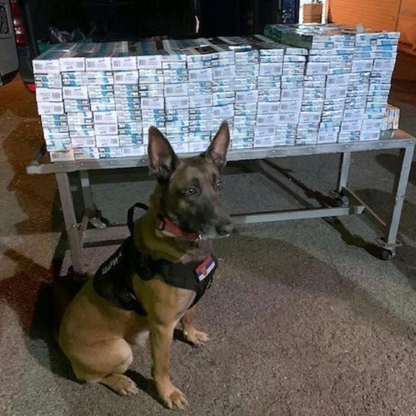 Nepogrešivi njuh carinskog psa Nerona i mobilni skener omogućili su carinicima da 23. decembra 2020. godine na prelazu Kelebija, u saradnji sa policijom, otkriju preko 2.500 paklica cigareta sakrivenih u krovu jednog kombija.