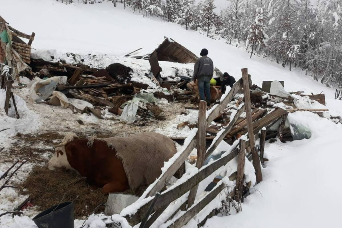 Težak, ogroman sneg koji je prethodnih dana okovao prijepoljski kraj uzeo je svoj danak. Od siline snežnog pokrivača urušio se krov na štali Mithada Žigovića iz Brodareva i ubio mu tri krave, dok se veterinari bore za život četvrte, a koju će najverovatnije morati da uspavaju.