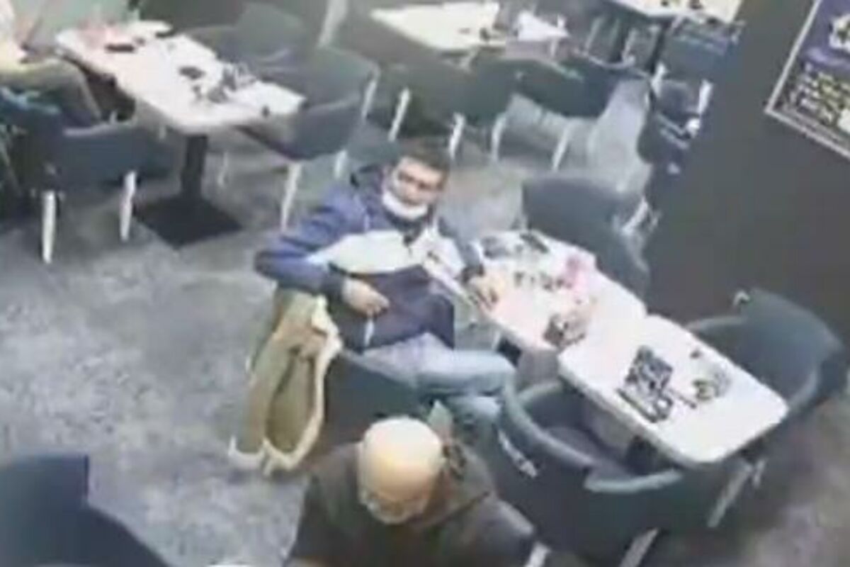 Jedan muškarac je u prolazu uzeo novčanik sa stola od čoveka okrenutog leđima.