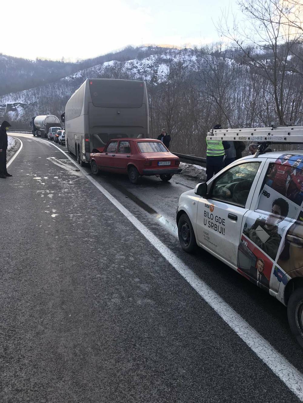 Na samo nekoliko kilometara dalje, dogodila se još jedna saobraćajna nezgoda kad je putnički automobil udario u autobus koji se nalazio ispred njega.