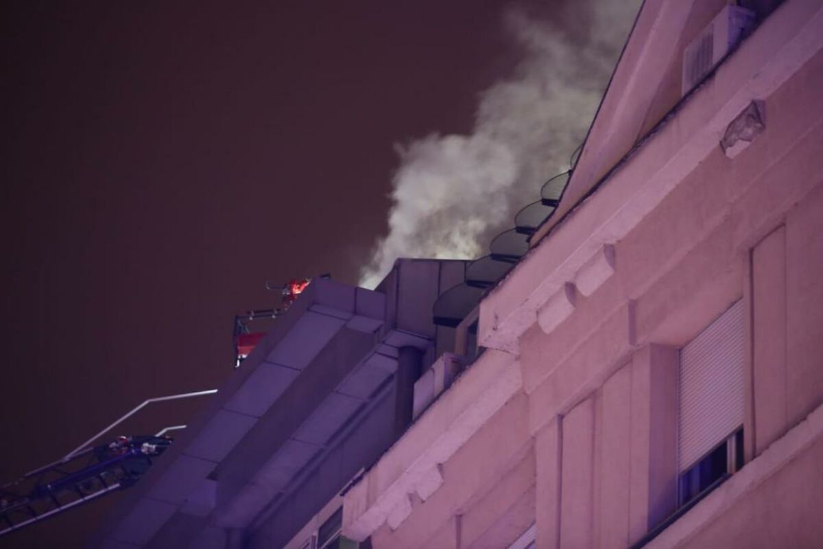 U toku je evakuacija stanara zgrade. Ekipe vatrogasaca upravo otvaraju krovnu konstrukciju.