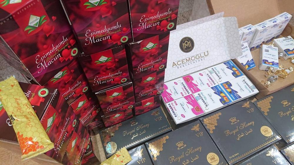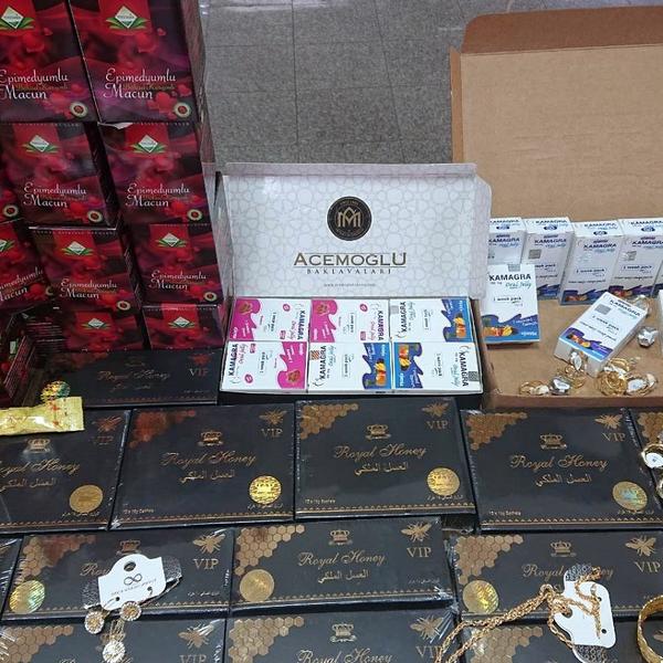 Međutim, prilikom detaljnog pregleda najpre je u jednoj od torbi sa garderobom pronađeno nekoliko kutija sredstva za potenciju „Royal Honey“. Potom su carinici u naizgled originalnim pakovanjima turskih baklava pronašli kutije kamagre, da bi nakon toga teglice sredstva za potenciju „Macun“ bile pronađene i ispod tri ćupa za pušenje nargila.