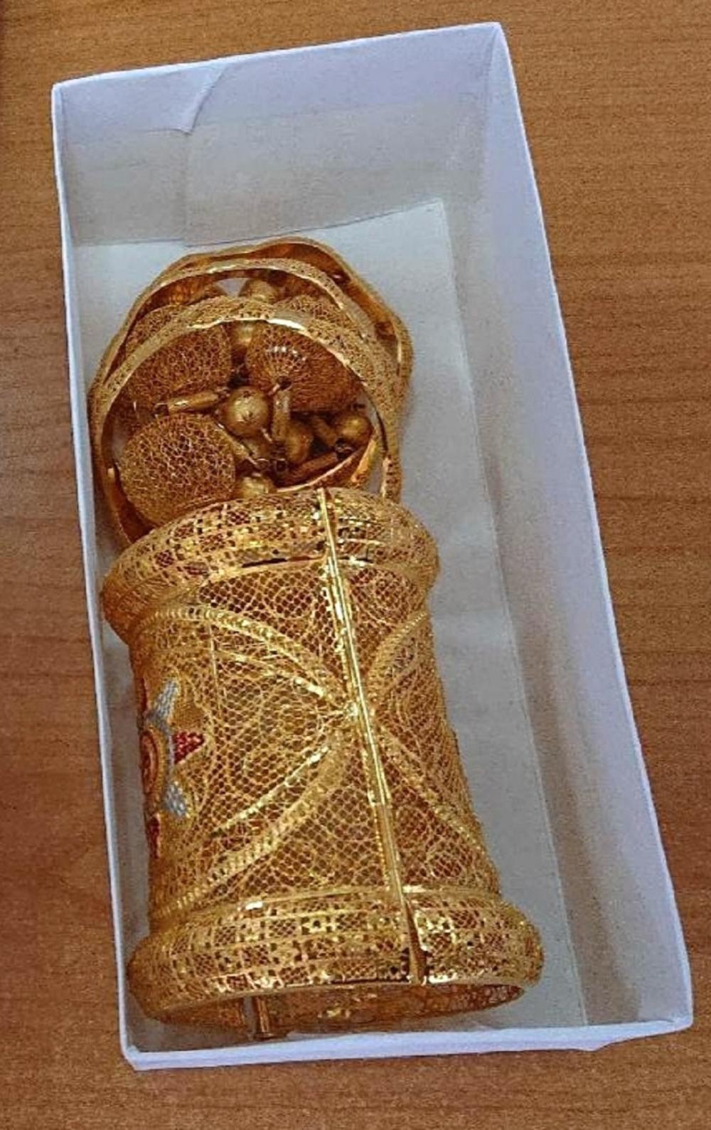 Međutim, prilikom pregleda automobila, najpre je ispod prednjeg sedišta u torbi sa pampers pelenama pronađen neprijavljeni zlatni nakit.
