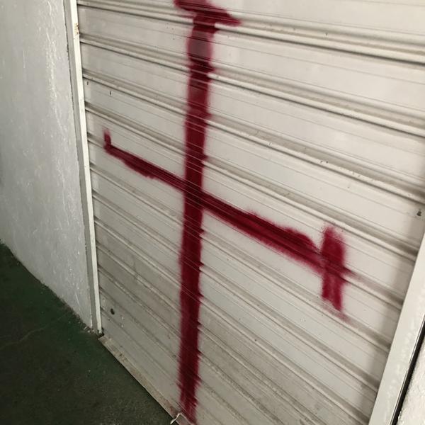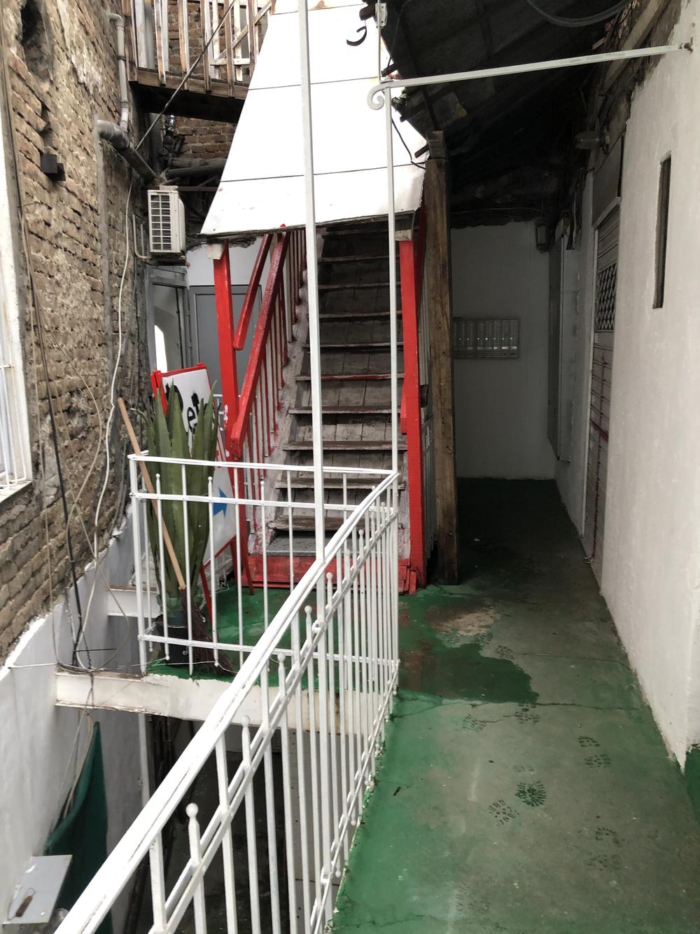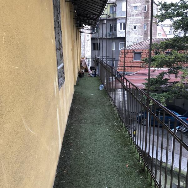 Zgrada je prilično zavučena, usput smo naišli na grafit na kome je iscrtan krst crvenom bojom, što je izgledalo sablasno. Uske stepenice sa spoljne strane vode do hostela, a na kraju jedne terase duž cele zgrade naišli smo na još stambenih jedinica, tako da nije ni čudo što je baš ova lokacija mesto gde su se krili.