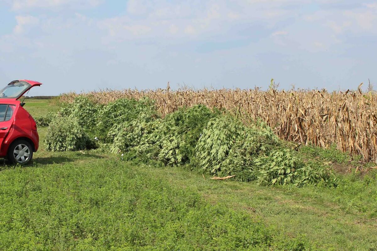 Policija je zasad sa 340 stabljika indijske konoplje, visine preko dva metra i težine tonu i 240 kilograma, pronašla na njivi osumnjičenog E.L.
