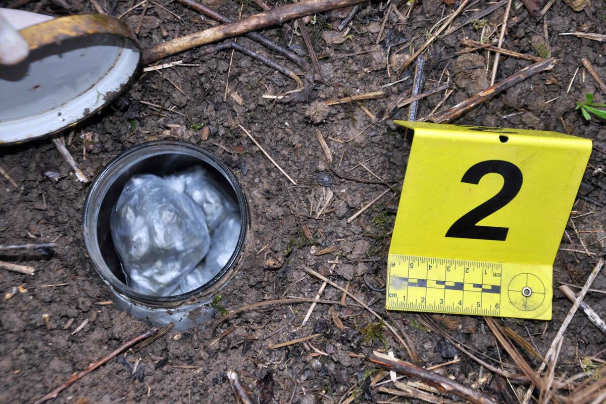 Policija je u šumi na Čukarici pronašla vagicu za precizno merenje kao i zakopane u teglu 94 kesice marihuane koje su, kako se sumnja, prethodno sakrili R. S. i L. S. radi dalje prodaje.