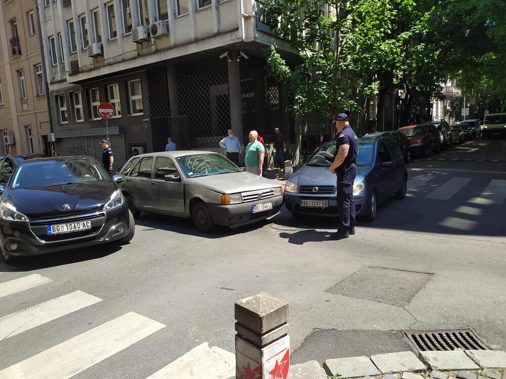 SUDAR U STROGOM CENTRU BEOGRADA! Prve fotografije sa lica mesta, vozači izašli i SVAĐAJU SE! (FOTO)