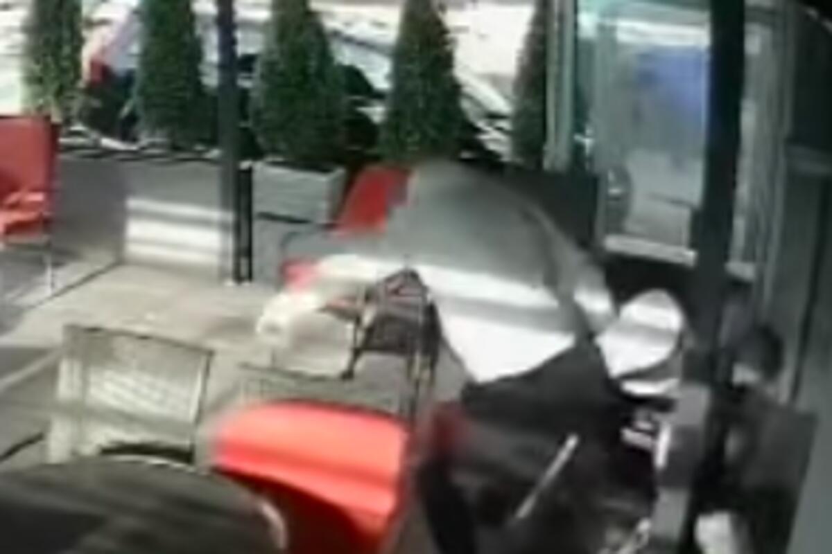 Na video snimku se vidi da muškarac sedi u bašti kafića i da mu iznenada pritrčavaju dve muške osobe i počinju da ga udaraju