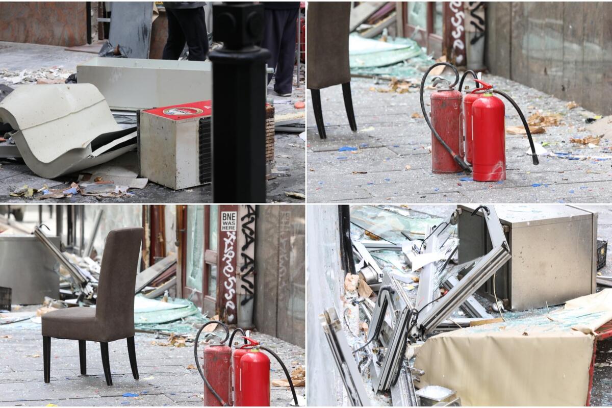 Na ulici su stolice, prozori, ostali delovi nameštaja iz lokala, kao i plinske boce.