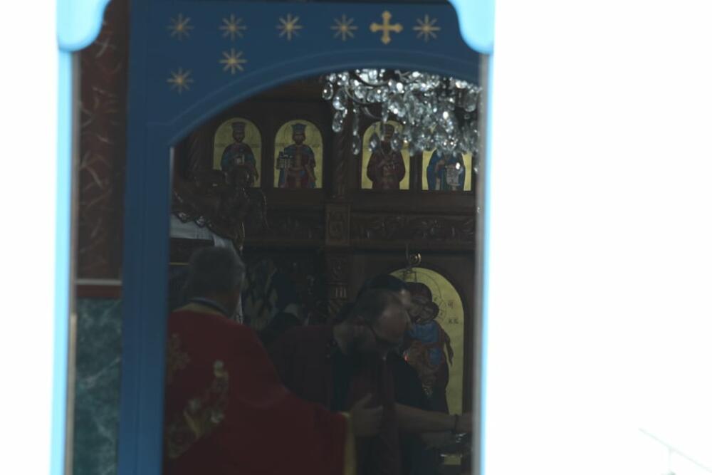 Kovčeg je prvo unešen u crkvu, a služba je održana napolju. Držao ju je starešina hrana Sredo Vranješ.