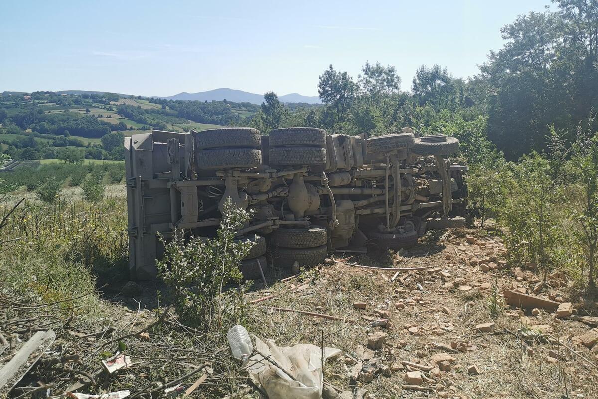 Kako se nezvanično saznaje, vozač kamiona zadobio je lakše telesne povrede. Intervenisala je i policija, a za podizanje kamiona bila je neophodna dizalica.
