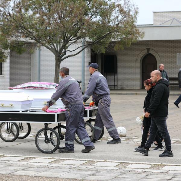 Na Novom groblju u Obrenovcu održao se poslednji ispraćaj sestara Mije (7) i Mine V. (5), koje su nastradale prošle nedelje od strujnog udara dok su se igrale u kupatilu.