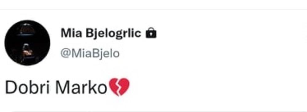 Ovim tužnim povodom oglasila se Mia Bjelogrlić, ćerka našeg poznatog glumca Dragana Bjelogrlića. Ona je na svom tviter nalogu podelila tužnu vest o Markovoj smrti uz kratku poruku "Dobri Marko".