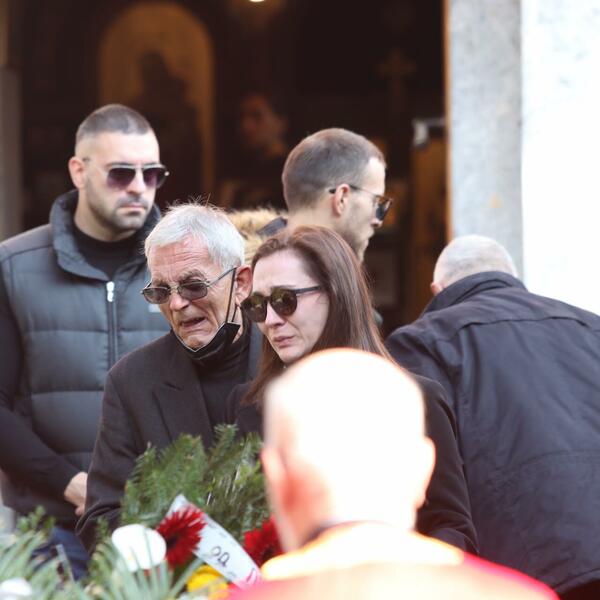 Kolege i prijatelji su pristigli na Novo groblje kako bi se oprostili od nedavno preminulog glumca, a rođena sestra Marka Živića, Nevena skrhana bolom prima saučešće, dok tugu prikriva crnim naočarima.
