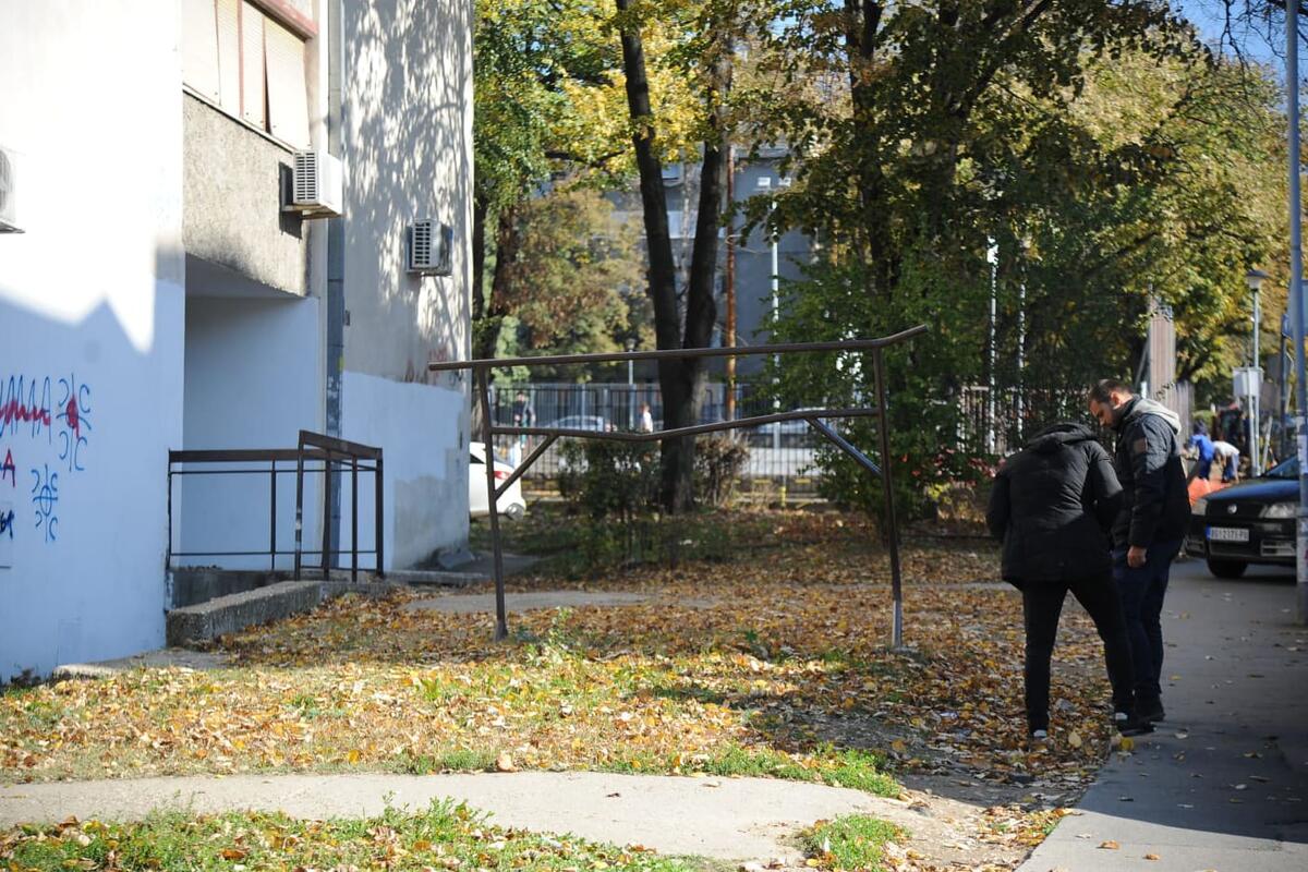 Policija i inspektori pretražuju prostor oko zgrade u Kijevskoj ulici na Banovom Brdu u kojoj je žena ubila supruga.