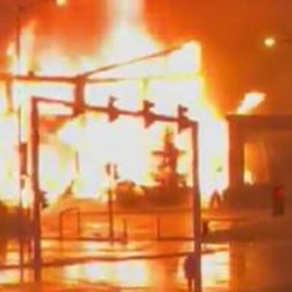 Ispred restorana na Novom Beogradu, u Ulici Omladinskih brigada, koji je u sredu uveče izgoreo, vatrogasci su i dalje jutros dežurali.