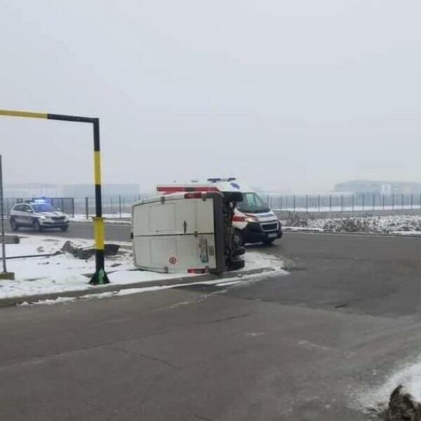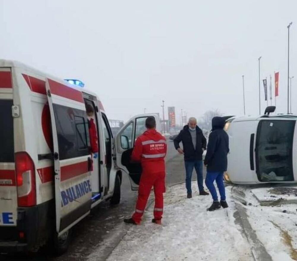 Ekipa hitne pomoći intervenisala je zbog povreda jednog od dvojice muškaraca koji su se nalazili u kombiju